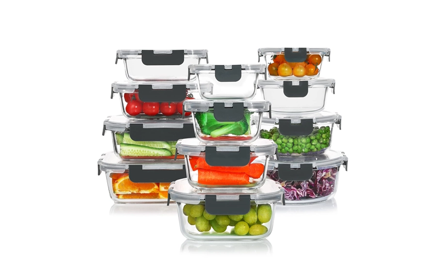 Airtight containers for meal prep. Microwave, oven, freezer, and dishwasher safe. Locking lids