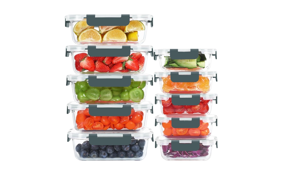 KOMUEE 10 Pack Glass Food Storage Containers, Meal Prep Containers with Lids, Airtight Glass Lunch Boxes, Freezer, Oven, and Microwave Safe(10-Pack Grey)