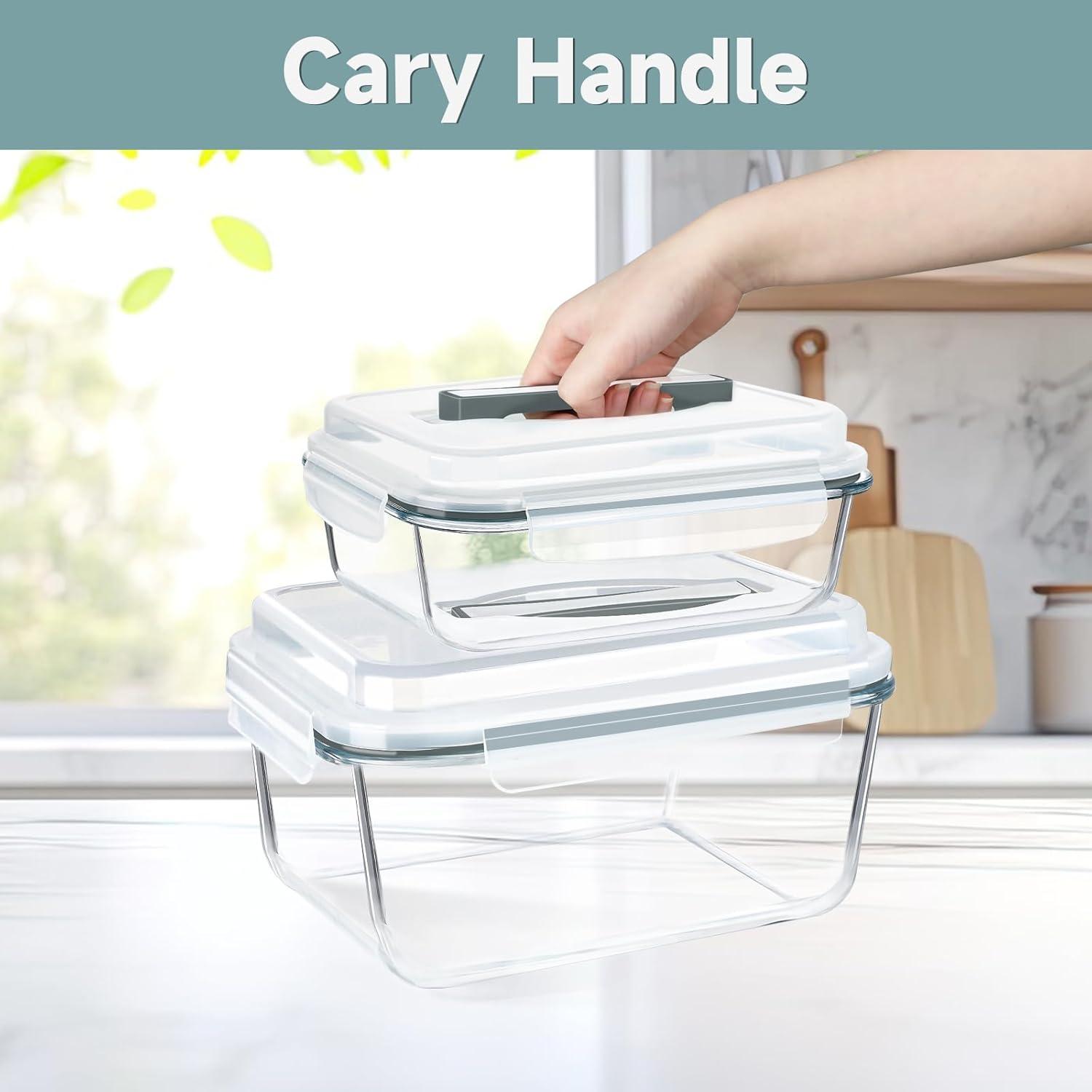 Leak-Proof Design: Equipped with BPA-free snap locking lids that feature convenient carry handles, these glass containers with lids prevent leaks and spills. The plastic lids also create an airtight seal, keeping food fresh for longer.