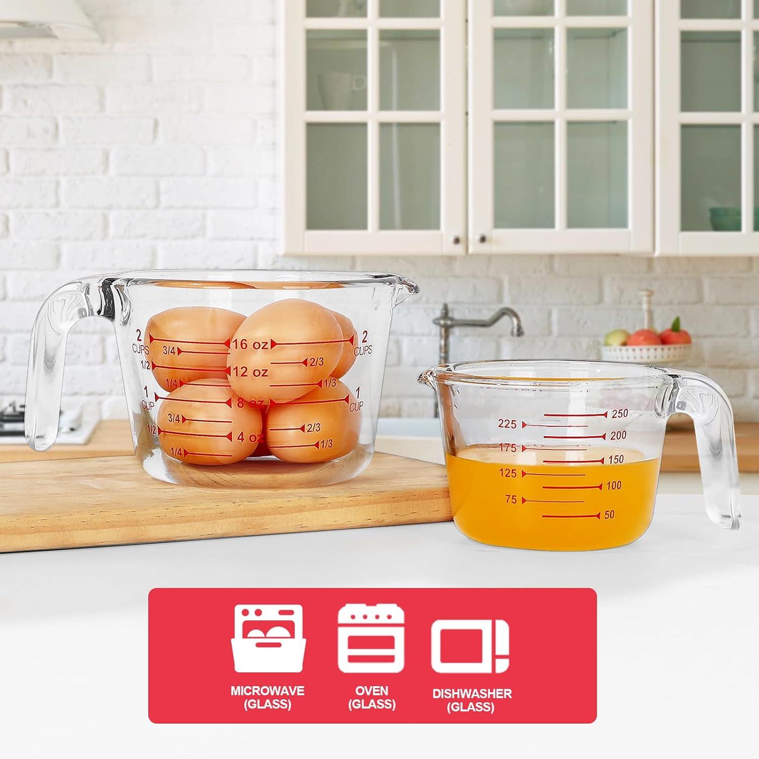 COMFORTABLE GRIP: Each glass liquid measuring cup is designed with a sturdy handle, providing a comfortable grip. This makes it easy to hold and control the cups while measuring and pouring.